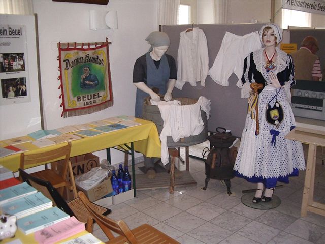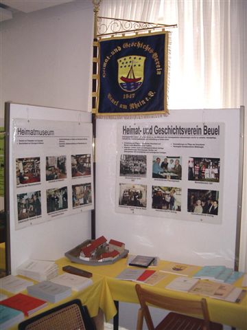 Natürlich haben die zahlreichen interessanten Publikationen sowie die beiden Hinweistafeln auf die Aktivitäten des Heimat- und Geschichtsvereins sowie des Heimatmuseums und die Ursprünge der Beueler Weiberfastnacht, dargestellt am Beispiel der alten Standarte des Beueler Damenkomitees von 1824 nicht fehlen dürfen.