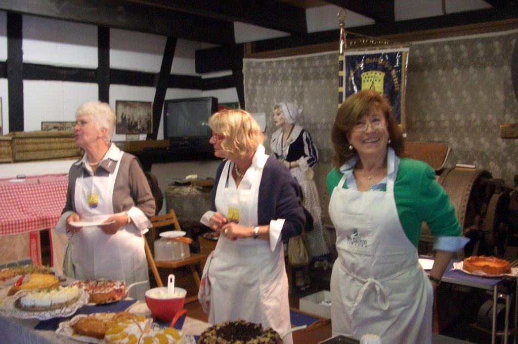 Im Hof des Heimatmuseums Beuel waren Zelte aufgestellt, um für drohenden Regen gerüstet zu sein. Die rot eingedeckten Tische mit ihren Blumensträußchen sorgten für Farbe an diesem tristen Tag, und ein Blick in die fröhliche Runde zeigte, dass viele unserer „Stammgäste“ gekommen waren.