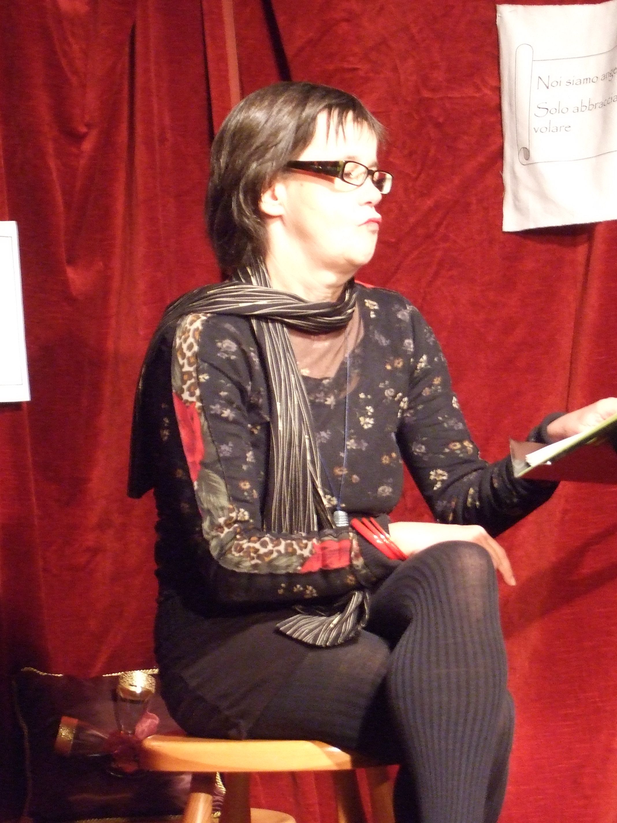 Wer Petra Kalkutschke kennt, weiß, dass sie sich nicht nur mit den Lippen ausdrückt, sondern ihre ganze Körperhaltung in das Geschehen in der Literatur einbringt.