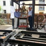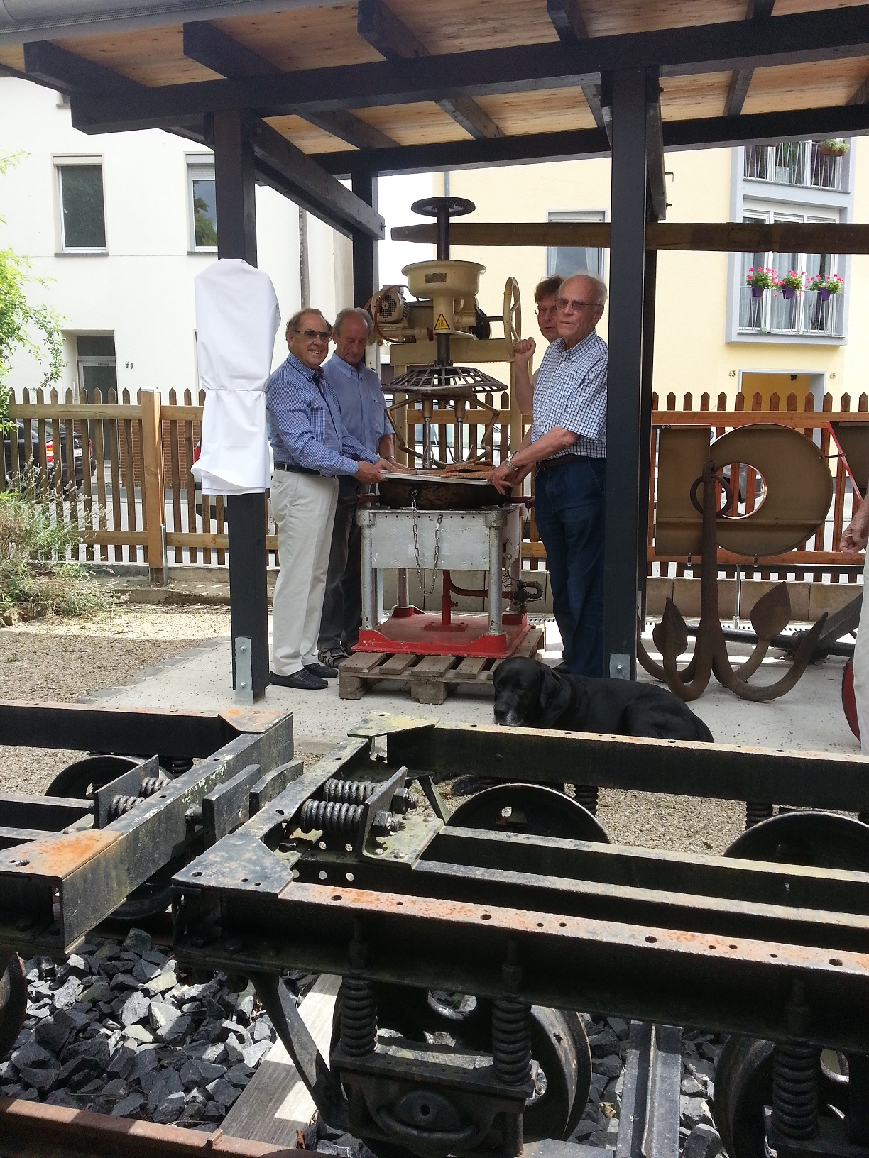 Helmut Kessler, der Seniorchef der weltweit bekannten Firma KESSKO, überreichte mit erklärenden Worten – die Maschine selbst ist zu schwer – die mehr als 50 Jahre alte Maschine. Während er die noch verhängte Informationstafel von ihrem Tuch befreite, erzählte er aus der Familiengeschichte. Die Firma KESSKO ist das einzige Industrie-unternehmen in Beuel, das sich nach mehr als 100 Jahren noch in Familienbesitz befindet.