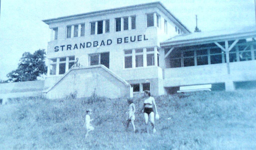 Da, wo heute noch die schönen alten Bäume auf der großen Wiese stehen, stand das Beueler Strandbad. Es wurde 1928 als Freibad errichtet.