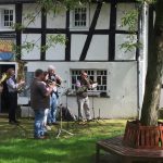 Ja, der Rhein ist märchenhaft für die Künstlerin, die sich seit langem mit dem Fluss vor unserer Haustür beschäftigt. In Farbholzschnitten und den parallel dazu entstandenen Gedichten, die mit einem Augenzwinkern zu lesen und zu verstehen sind, drückt die Künstlerin ihre Liebe zum Rhein immer wieder anders aus, denn zu jedem Ausstellungsort fügt sie ihrer Bildserie Neues hinzu. Inzwischen besteht die Bildserie aus mindestens 45 Bildern, von denen im Museum nur eine Auswahl gezeigt werden kann. Für Beuel sind zwei Blätter entstanden: Eine Hommage an Ernemann Sander und seine Wäscherin, sowie ein Blatt zum Brunnen in Pützchen. Zur Eröffnung begrüßte Inke Kuster als Organisatorin der Ausstellung die zahlreichen Gäste im Innenhof des Museums. Unterstützt wurde sie dabei vom Haus- und Hoforchester unter Harvey Lebang, das mit altbekannten Rheinliedern stimmungsvoll einstimmte. Gerhard Volkmer, Schwager der Künstlerin, gab den Gästen zu Beginn noch einen kurzen Überblick über den Werdegang Malvira Hahns, die mit ihren Werken in vielen Museen vertreten ist, so auch im Mittelrheinmuseum in Koblenz. In der Ausstellung gab die Künstlerin einen persönlichen Einblick in die Technik des Holzschnittes, wobei die verschiedenen Arbeitsschritte und das Handwerkszeug der Holzschnittkünstlerin ihre Technik visualisiert. Die Ausstellung läuft bis zum 16. August 2019 und ist während der Öffnungszeiten des Museums zu sehen. Der Eintritt ist frei.