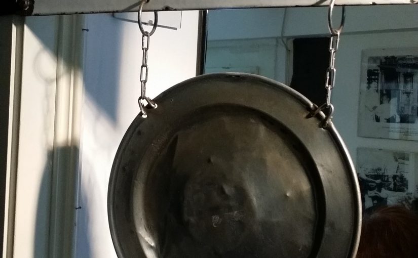 Solch ein Schild führt uns aber auch tief ins Mittelalter, als der Bader mit solch einem Becken durchs Dorf lief, auf das Becken schlug und damit kund tat, dass das Bad bereitet war.
