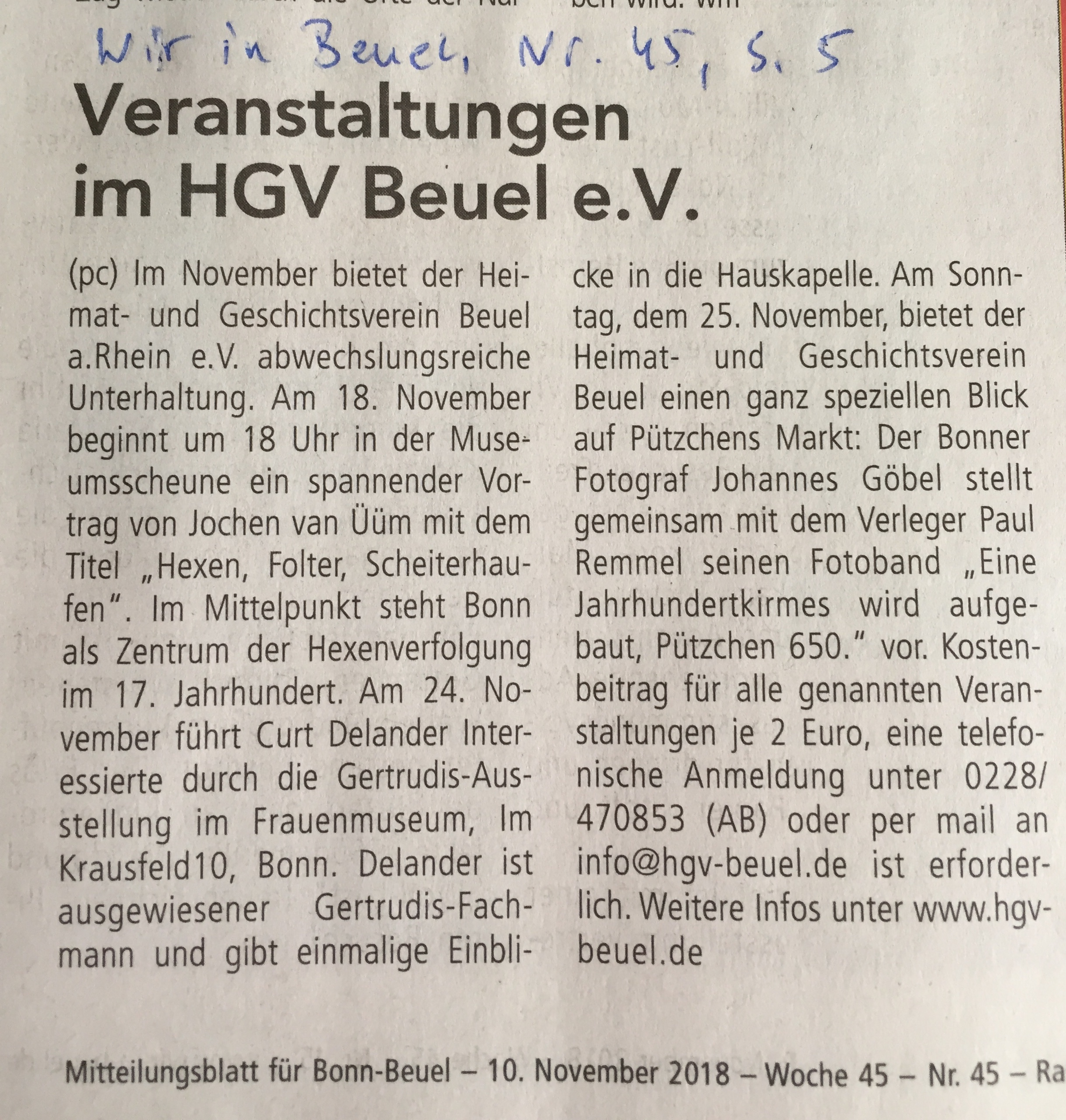 Wir in Beuel vom 10.11.2018 Veranstaltungen im HGV Beuel e.V. Wir in Beuel vom 10.11.2018 Zum Lesen bitte auf das Bild klicken: